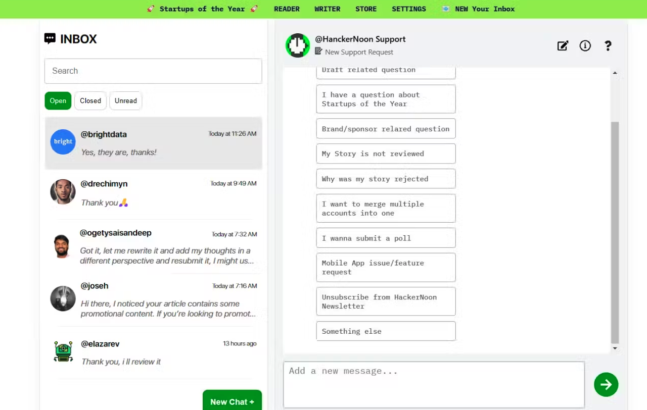 HackerNoon’s platform continues to evolve, and one of the most helpful additions for writers is the HackerNoon Inbox — a space designed to streamline communication not only with the editorial team but also with support for any purchased services. Whether you’re waiting on a draft review, disputing an order, or need clarification on your story, the inbox keeps every conversation organized and easy to access.